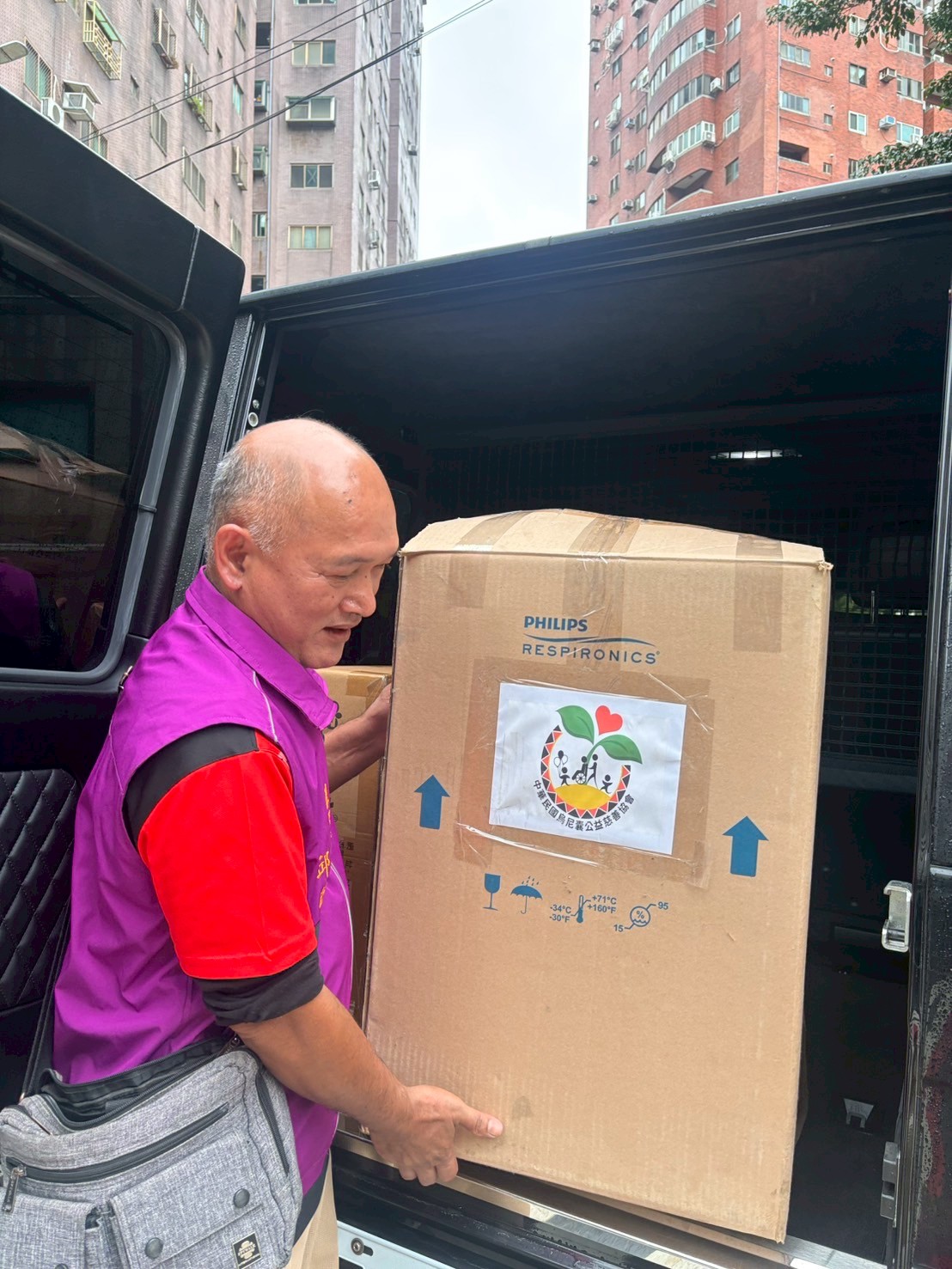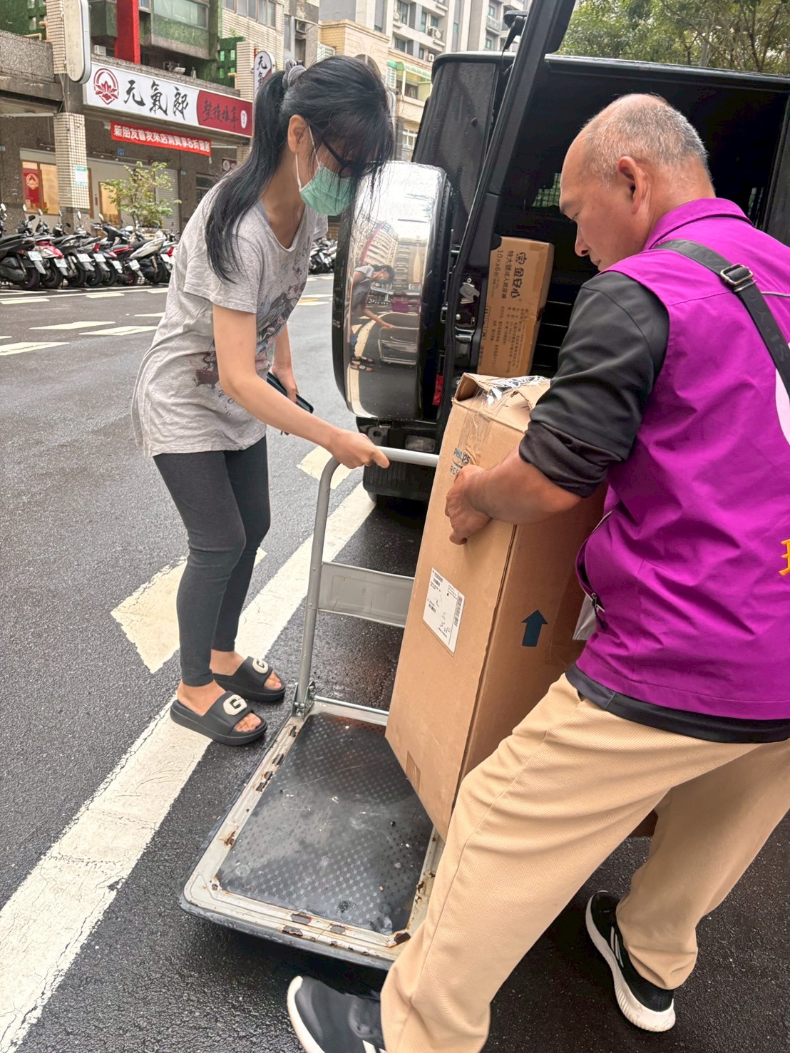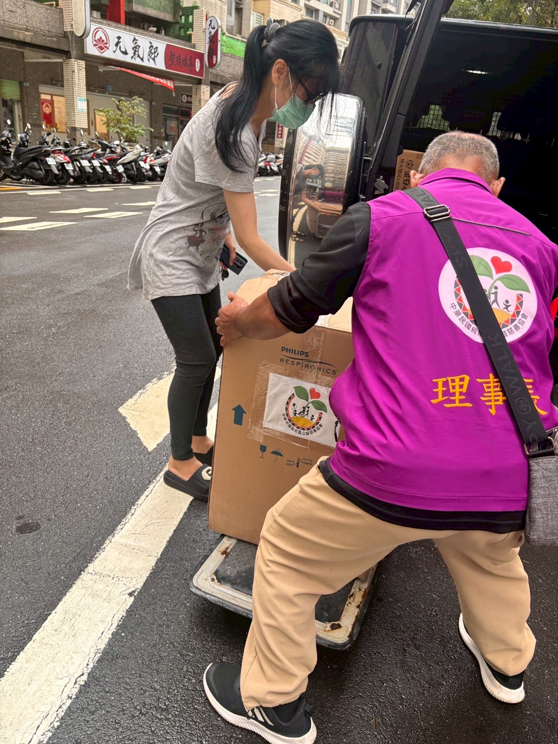在這場大風大雨中,我們的志工仍堅定前行,只為將一台呼吸器送到平鎮的需要者手中。